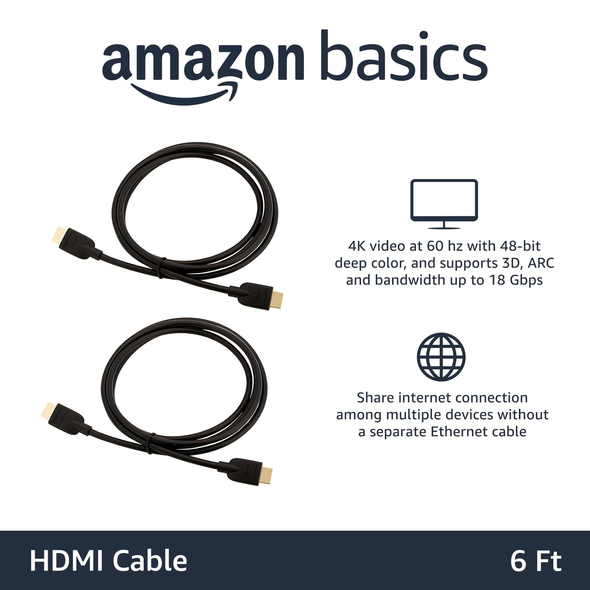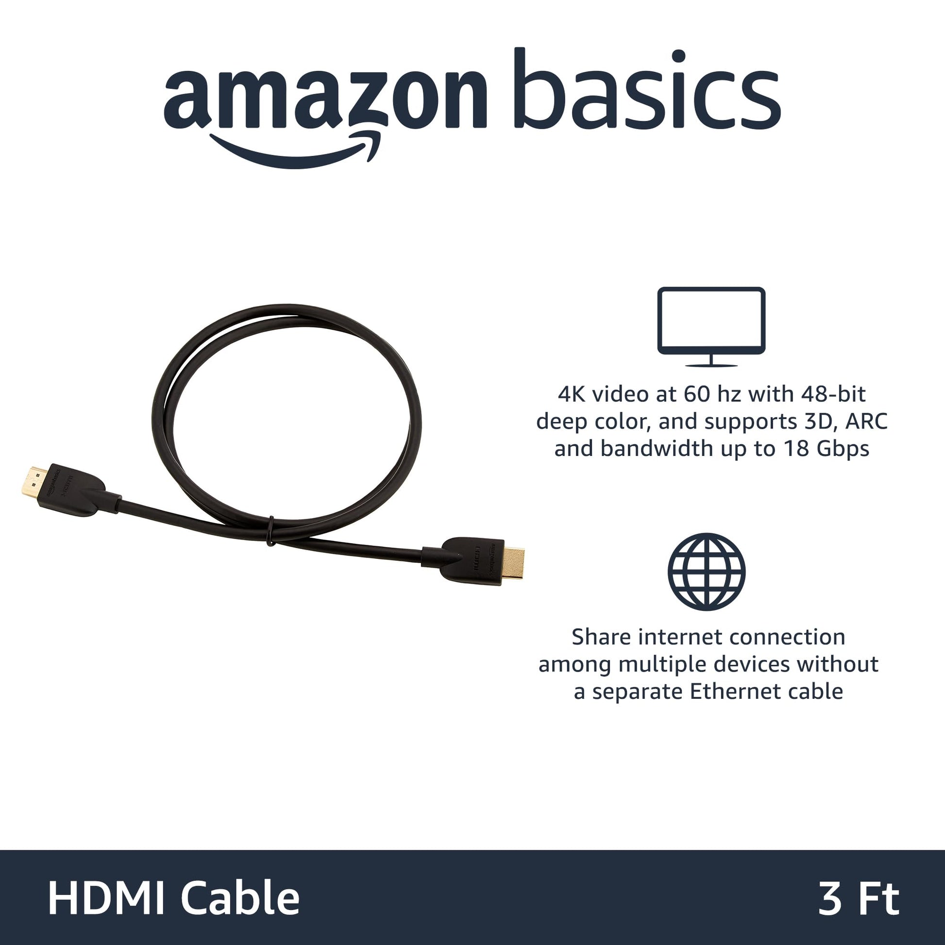 Amazon Basics HDMI Cable, 3-Pack, 10ft, 4K@60Hz, High-Speed 4K HDMI 2.0 Cord (18Gbps), 2160p, 48 bit, Compatible with TV/PS5/Xbox/Roku, Black