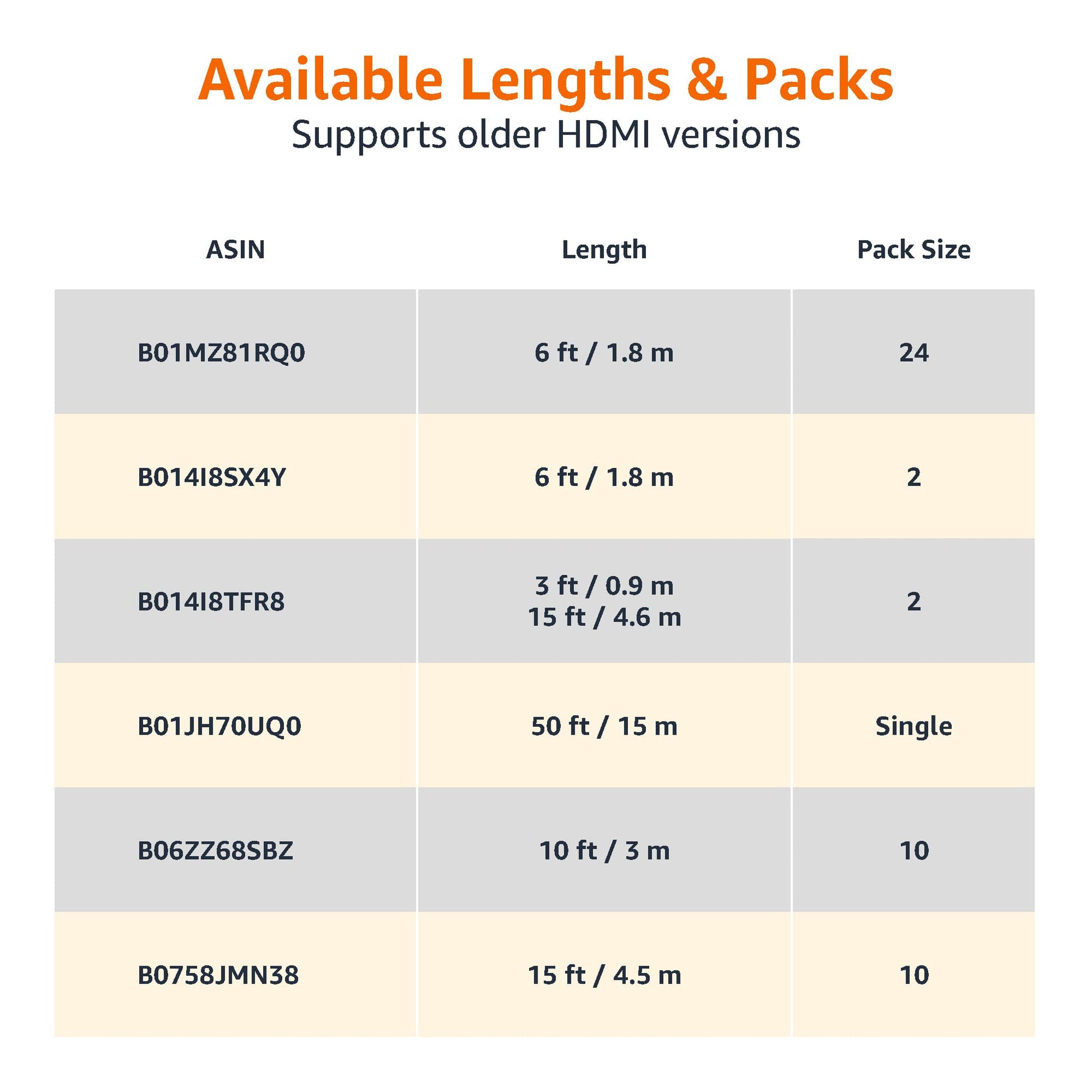 - IN THE BOX: HDMI cable (A Male to A Male) for connecting 2 HDMI-enabled devices; 10 feet long (3-pack)