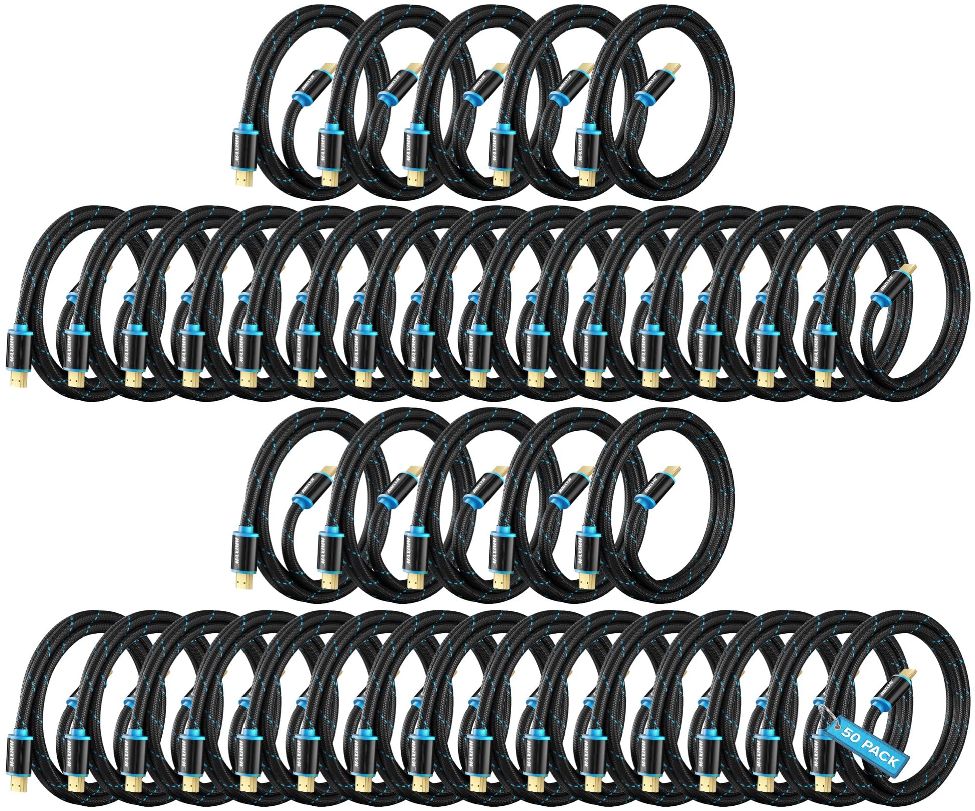 HDMI Cable 4K Ultra HD 6 Foot (10 Pack) Nylon Braided HDMI 2.0 Cable, High Speed 18Gbps 4K60Hz HDR, 3D, 2160p, 1080p, HDCP 2.2, ARC, HDMI Cables for Monitors, HDTV